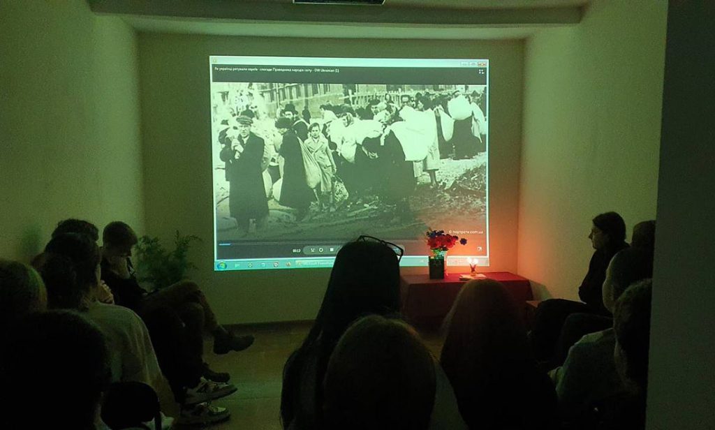 Під час перегляду документального фільму «Голокост і українці», презентації, учні 9-Б класу ліцею №7 пригадали трагічні сторінки Другої світової, вирішення єврейського питання і ознайомились з подвигами українців, які рятували життя євреям у той час. Завідуюча філії Іващенко Тетяна розповіла присутнім про окупаційний період м. Прилуки та непоодинокі випадки порятунку євреїв, небайдужих до їх доль прилучан.
