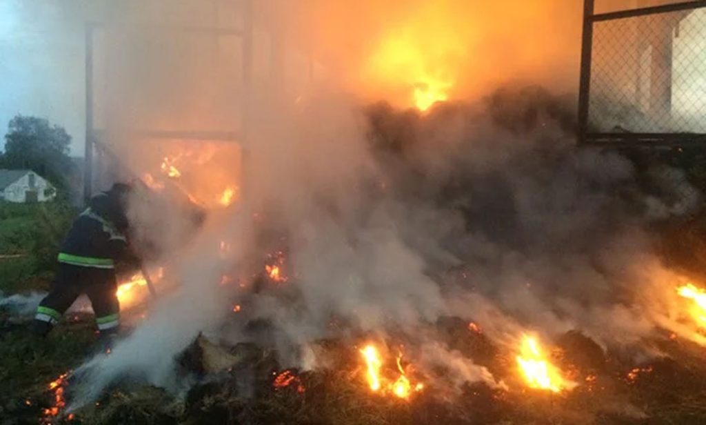 Вогнем знищено навіс та 3 тонни грубих кормів.