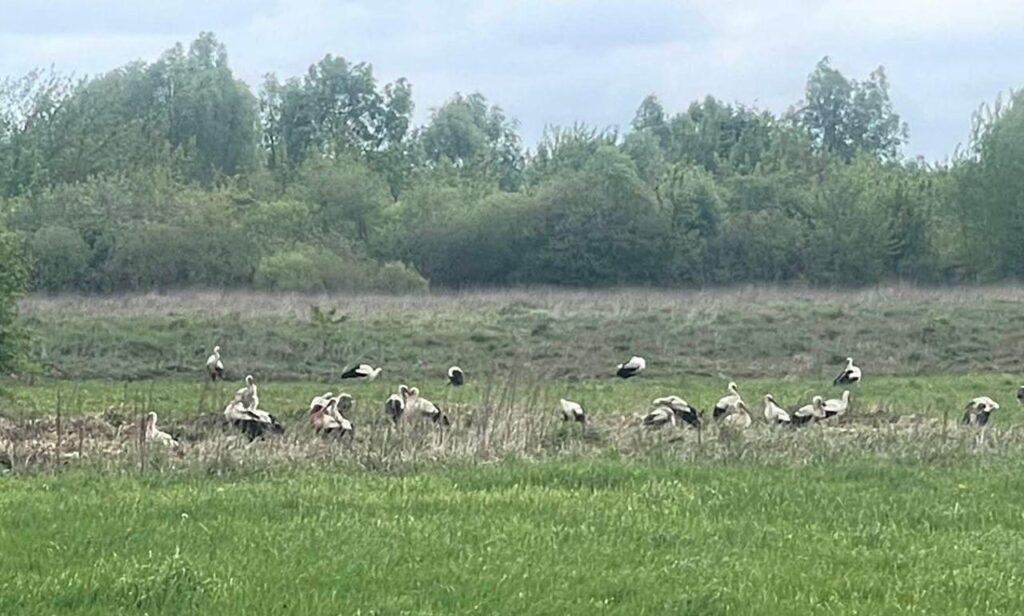Ймовірно, тікали від війни: у село на Прилуччину прилетіла зграя лелек – серед них є поранені