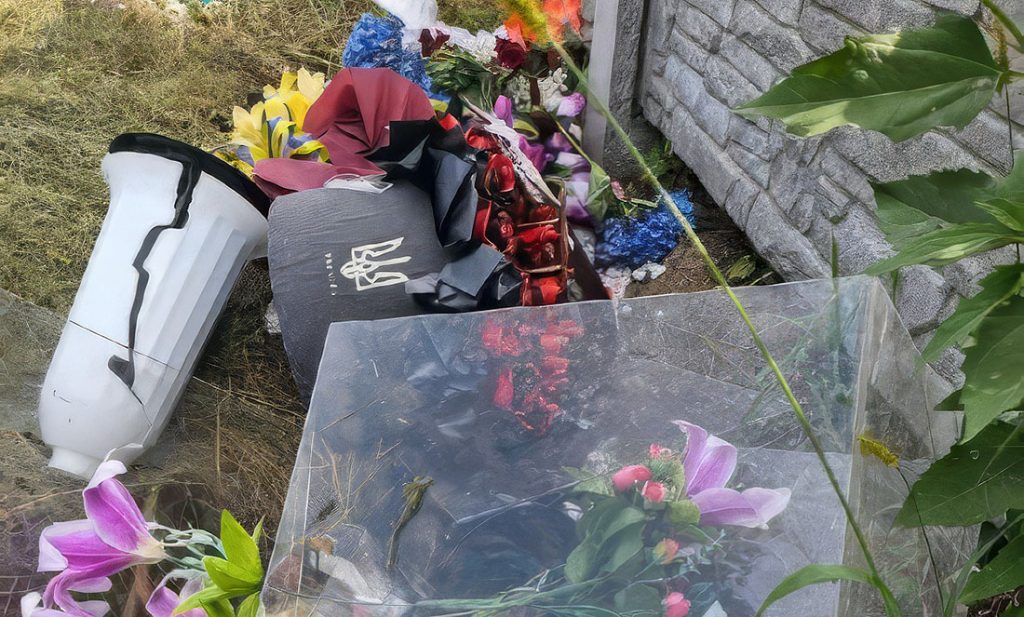 1 вересня до поліції звернулись родичі загиблих, які повідомили, що на місцевих кладовищах невідома особа пошкодила могили: розкидала речі, викрала квіти, статуетки, лампадки та іграшки. Правоохоронці також виявили дописи з фото пошкоджень у соціальних мережах.