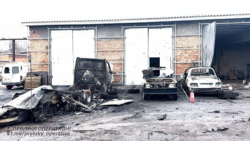 23 грудня внаслідок атаки РФ по Прилуках згоріли чотири автівки, ще щонайменше шість — зазнали пошкоджень. Це сталося о 4:51 ранку. Вибух був на приватній території, на якій розташована станція технічного обслуговування автомобілів.