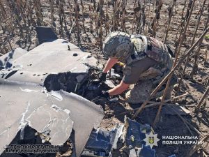 Фото: Поліція Чернігівської області. Вибухотехніки поліції Чернігівщини знешкодили бойові частини двох російських ударних безпілотників, які збили у Прилуцькому та Ніжинському...